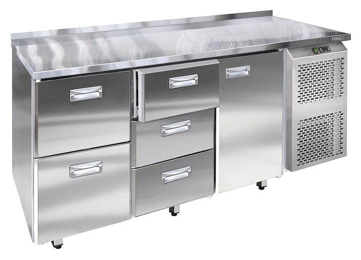 Холодильный стол Finist СХС-600-1/5 предназначен для хранения пищевых продуктов и напитков на предприятиях общественного питания, торговли и пищевых производствах. Модель оснащена 1 распашной дверью и 5 выдвижными ящиками с доводчиками, обеспечивающими гарантированное закрытие и поддержание заданной температуры в рабочем объеме стола. Передняя панель моторного отсека имеет большую площадь перфорации, что позволяет обеспечить холодильному агрегату поступление воздуха для охлаждения. Изделие выполнено из высококачественной пищевой нержавеющей стали, которая отличается прочностью и долговечностью, не впитывает загрязнения и легко очищается.