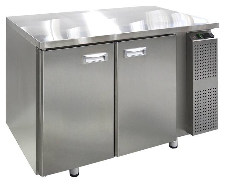 Холодильный стол Finist СХСм-700-2 предназначен для хранения предварительно охлажденных мясных и рыбных полуфабрикатов, заготовок для салатов, молочной продукции, охлажденных напитков и других пищевых продуктов на предприятиях общественного питания и торговли. Модель оснащена расположенным сбоку агрегатным отсеком, столешницей, 2 холодильными камерами с распашными дверцами, устойчивыми ножками с подпятниками, кабелем питания с евровилкой и кнопочной панелью управления с цифровым дисплеем. Корпус выполнен из высококачественной нержавеющей стали.