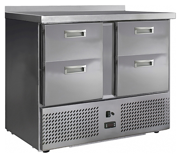 Холодильный стол Finist СХСн-700-0/4 предназначен для хранения предварительно охлажденных мясных и рыбных полуфабрикатов, заготовок для салатов, молочной продукции, охлажденных напитков и других пищевых продуктов на предприятиях общественного питания и торговли. Модель оснащена расположенным снизу агрегатным отсеком, столешницей, 2 холодильными камерами с распашными дверцами, устойчивыми ножками, регулируемыми по высоте, с подпятниками, кабелем питания с евровилкой и кнопочной панелью управления с цифровым дисплеем. Корпус выполнен из высококачественной нержавеющей стали, задняя стенка - из оцинкованной стали.