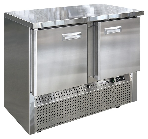 Холодильный стол Finist СХСн-700-2 предназначен для хранения предварительно охлажденных мясных и рыбных полуфабрикатов, заготовок для салатов, молочной продукции, охлажденных напитков и других пищевых продуктов на предприятиях общественного питания и торговли. Модель оснащена расположенным снизу агрегатным отсеком, столешницей, 2 холодильными камерами с распашными дверцами, устойчивыми ножками с подпятниками, кабелем питания с евровилкой и кнопочной панелью управления с цифровым дисплеем. Корпус выполнен из высококачественной нержавеющей стали.