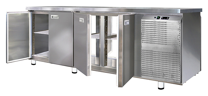 Сквозной холодильный стол Finist СХСскв-700-8 предназначен для хранения пищевых продуктов и напитков на предприятиях общественного питания, торговли и пищевых производствах. Модель оснащена боковым расположением агрегата и 4 дверьми. Стол используется в островном размещении для работы с двух сторон, организует потоки внутри цеха и служит элементом открытой шоу-кухни или бара. Надежные петли двери с опцией доводчика обеспечивают гарантированное закрытие и поддержание заданной температуры в рабочем объеме стола. Изделие выполнено из высококачественной нержавеющей стали, которая отличается прочностью и долговечностью, не впитывает загрязнения и легко очищается.