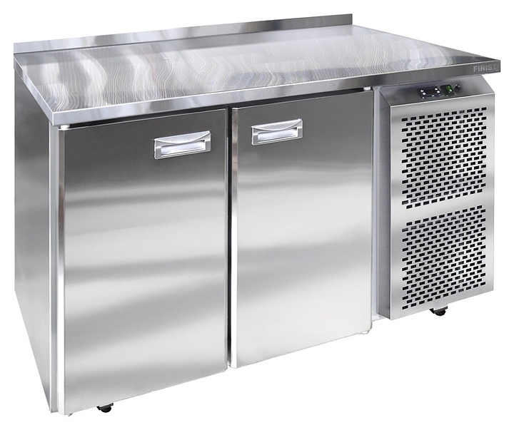 Холодильный стол Finist СХСуо-600-2 предназначен для хранения предварительно охлажденных мясных и рыбных полуфабрикатов, заготовок для салатов, молочной продукции, охлажденных напитков и других пищевых продуктов на предприятиях общественного питания и торговли. Модель оснащена расположенным сбоку агрегатным отсеком, 2 секциями с распашными дверьми, устойчивыми опорами, кабелем питания и панелью управления с цифровым дисплеем. Корпус выполнен из высококачественной нержавеющей стали.