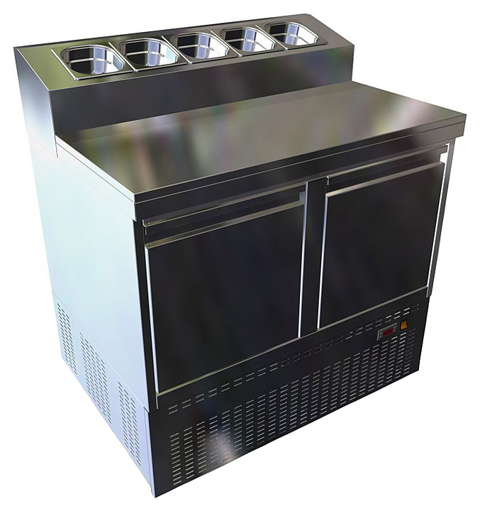 Холодильный стол Gastrolux СОП2-097/2Д/Sр серии Special предназначен для раскатки теста и обработки ингредиентов для приготовления пиццы, охлаждения и кратковременного хранения скоропортящихся продуктов и напитков на предприятиях общественного питания и торговли. Корпус и рабочая поверхность выполнены из нержавеющей стали AISI 430.