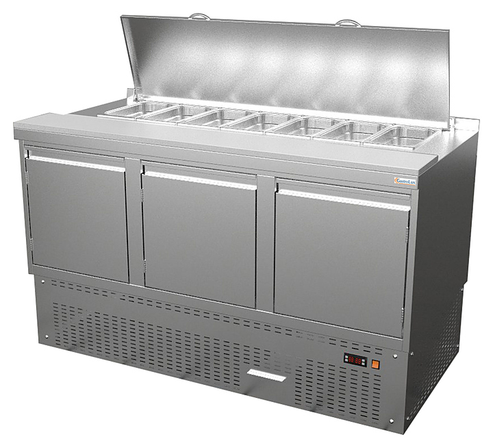 Холодильный стол Gastrolux СОС3-146/3Д/Sр серии Special предназначен для обработки ингредиентов для приготовления салатов и закусок, охлаждения и кратковременного хранения скоропортящихся продуктов и напитков на предприятиях общественного питания и торговли. Корпус и рабочая поверхность выполнены из нержавеющей стали AISI 430.