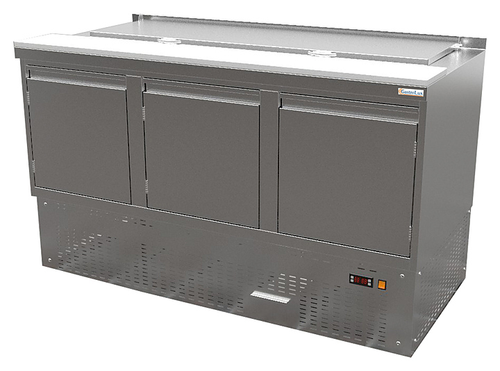 Холодильный стол Gastrolux СОС3-147/3Д/Sр серии Special предназначен для обработки ингредиентов для приготовления салатов и закусок, охлаждения и кратковременного хранения скоропортящихся продуктов и напитков на предприятиях общественного питания и торговли. Корпус и рабочая поверхность выполнены из нержавеющей стали AISI 430.