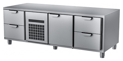 Холодильный стол HappyChef TC L 2-CR-1-2 предназначен для хранения предварительно охлажденных пищевых продуктов на предприятиях общественного питания и торговли. Модель оснащена центральной секцией с компрессорным холодильным агрегатом со съемной холодильной кассетой (Россия), 2 секциями справа: с распашной дверью и 2 выдвижными ящиками, 1 секцией слева с 2 выдвижными ящиками и электронной панелью управления, дверь и ящики имеют короткие горизонтальные рукоятки в верхней части. Корпус выполнен из нержавеющей стали марки AISI 430.