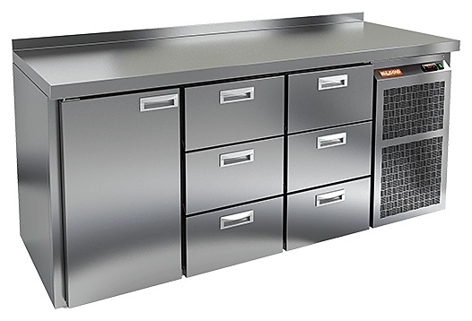 Охлаждаемый стол HICOLD GN 133 BR2 TN предназначен для хранения и обработки продуктов питания в барах, ресторанах, столовых, кафе, магазинах, лабораториях, больничных учреждениях, аптеках и на пищевых производствах. Оборудование увеличенного объема оснащено низкими ножками, распашной дверью, выдвижными ящиками, влагозащитной кнопкой, электронным блоком управления EVCO и CAREL. Между внешней и внутренней стенкой находится пена-теплоизолятор. Аппарат выполнен полностью из нержавеющей стали AISI-304.