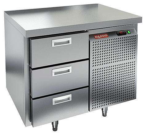 Холодильный стол HICOLD GN 3/TN O состоит из рабочей поверхности, на которой можно раскатывать тесто и обрабатывать ингредиенты для приготовления блюд, и камеры, предназначенной для охлаждения и кратковременного хранения скоропортящихся продуктов и напитков. Оборудование подходит для использования на предприятиях общественного питания.