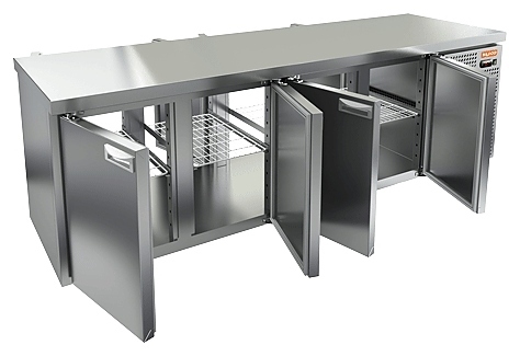 Холодильный стол HICOLD GNT 1111/HT состоит из рабочей поверхности, на которой можно раскатывать тесто и обрабатывать ингредиенты для приготовления блюд, и камеры, предназначенной для охлаждения и кратковременного хранения скоропортящихся продуктов и напитков. Оборудование подходит для использования на предприятиях общественного питания.