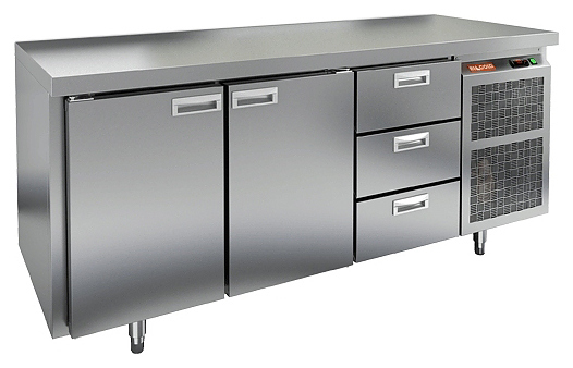 Холодильный стол HICOLD SN 113/TN O состоит из рабочей поверхности, на которой можно раскатывать тесто и обрабатывать ингредиенты для приготовления блюд, и камеры, предназначенной для охлаждения и кратковременного хранения скоропортящихся продуктов и напитков. Оборудование подходит для использования на предприятиях общественного питания.