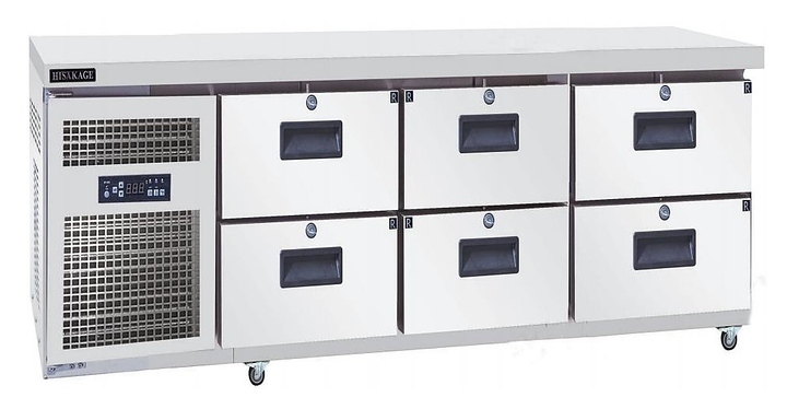 Холодильный стол HISAKAGE CL-180 используется на предприятиях общественного питания и торговли для обработки ингредиентов для приготовления блюд, а также кратковременного хранения скоропортящихся продуктов и напитков. Модель оснащена 6 ящиками. Корпус выполнен из нержавеющей стали AISI 201.