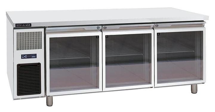 Холодильный стол HISAKAGE LRVG-180 используется на предприятиях общественного питания и торговли для обработки ингредиентов для приготовления блюд, а также кратковременного хранения скоропортящихся продуктов и напитков. Модель оснащена 3 полками и 3 распашными дверьми. Корпус выполнен из нержавеющей стали AISI 304, двери - из стекла в стальной раме.