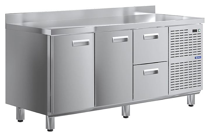 Холодильный стол KAYMAN KСХ-112/70 предназначен для охлаждения, хранения и обработки пищевых продуктов в ресторанах, барах, кафе, столовых, на профессиональных кухнях и пищевых производствах. Конструкция дверей позволяет осуществлять быструю загрузку и выгрузку продуктов, на прочной столешнице можно резать, раскатывать и отбивать полуфабрикаты. Модель оснащена 2 дверьми и 2 ящиками. Изделие выполнено из высококачественной нержавеющей стали, отличающейся прочностью и долговечностью.