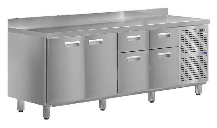 Холодильный стол KAYMAN KСХ-1144/60 предназначен для охлаждения, хранения и обработки пищевых продуктов в ресторанах, барах, кафе, столовых, на профессиональных кухнях и пищевых производствах. Конструкция дверей позволяет осуществлять быструю загрузку и выгрузку продуктов, на прочной столешнице можно резать, раскатывать и отбивать полуфабрикаты. Модель оснащена 2 дверьми и 4 ящиками. Изделие выполнено из высококачественной нержавеющей стали, отличающейся прочностью и долговечностью.