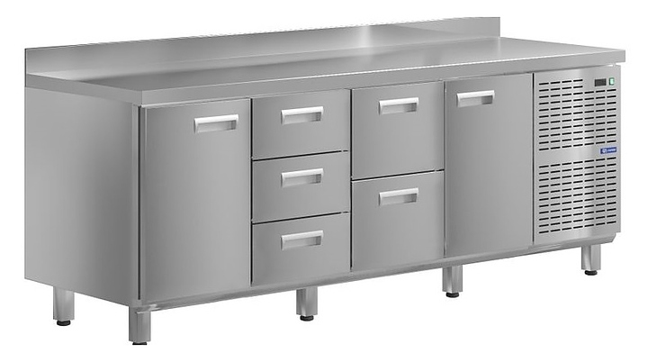 Холодильный стол KAYMAN KСХ-1321/70 предназначен для охлаждения, хранения и обработки пищевых продуктов в ресторанах, барах, кафе, столовых, на профессиональных кухнях и пищевых производствах. Конструкция дверей позволяет осуществлять быструю загрузку и выгрузку продуктов, на прочной столешнице можно резать, раскатывать и отбивать полуфабрикаты. Модель оснащена 2 дверьми и 5 ящиками. Изделие выполнено из высококачественной нержавеющей стали, отличающейся прочностью и долговечностью.