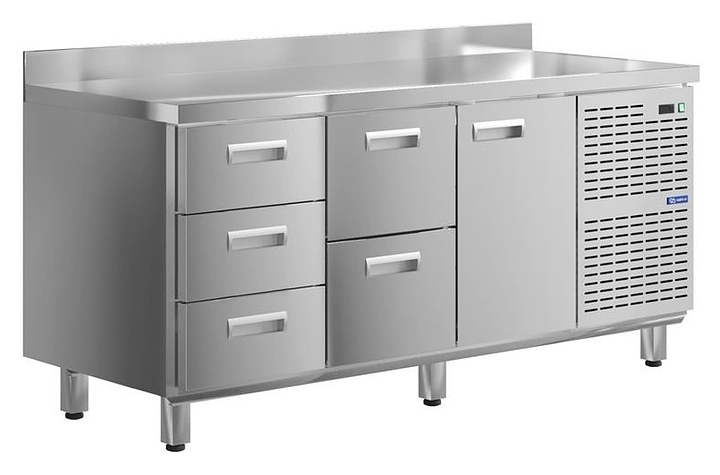 Холодильный стол KAYMAN KСХ-321/70 предназначен для охлаждения, хранения и обработки пищевых продуктов в ресторанах, барах, кафе, столовых, на профессиональных кухнях и пищевых производствах. Конструкция двери позволяет осуществлять быструю загрузку и выгрузку продуктов, на прочной столешнице можно резать, раскатывать и отбивать полуфабрикаты. Модель оснащена дверью и 5 ящиками. Изделие выполнено из высококачественной нержавеющей стали, отличающейся прочностью и долговечностью.