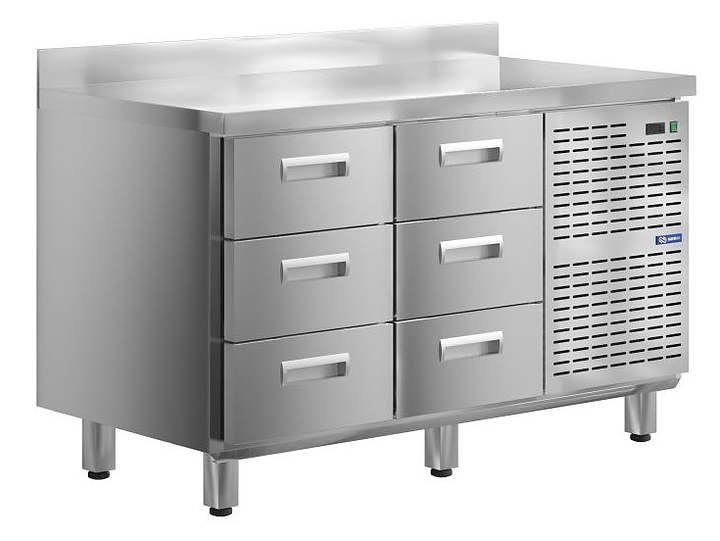 Холодильный стол KAYMAN КСХ-33/70 предназначен для охлаждения, хранения и обработки пищевых продуктов в ресторанах, барах, кафе, столовых, на профессиональных кухнях и пищевых производствах. Модель оснащена 6 ящиками и бортом. Столешница выполнена из нержавеющей стали.