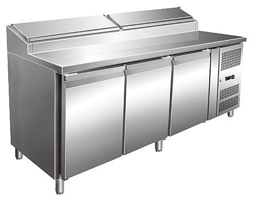 Холодильный стол Koreco SH3000/800 используется на предприятиях общественного питания и торговли для раскатки теста и обработки ингредиентов для приготовления пиццы, салатов, закусок и сэндвичей, охлаждения и кратковременного хранения скоропортящихся продуктов и напитков. Корпус и камера выполнены из нержавеющей стали AISI 304.