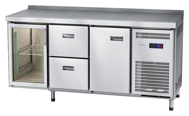 Стол морозильный Abat СХН-60-02 (1 дверь, 2 ящика, 1 дверь-стекло, борт)