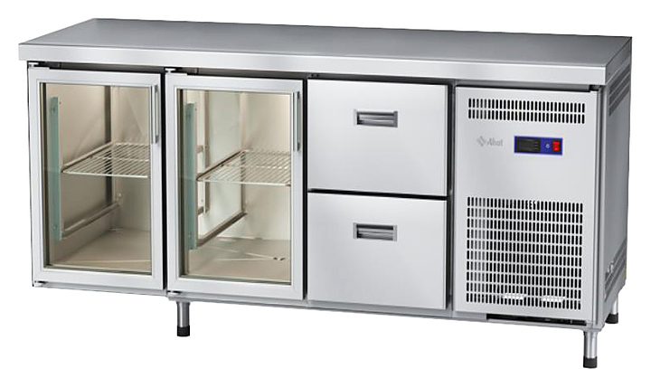 Морозильный стол Abat СХН-60-02 предназначен для раскатки теста, обработки ингредиентов для приготовления блюд, заморозки и хранения продуктов на предприятиях общественного питания и торговли. Модель оснащена регулируемыми по высоте 2 полками-решетками, 2 распашными дверцами из стекла и 2 выдвижными ящиками с уплотнителями с магнитной вставкой для обеспечения полной теплоизоляции и регулируемыми ножками.