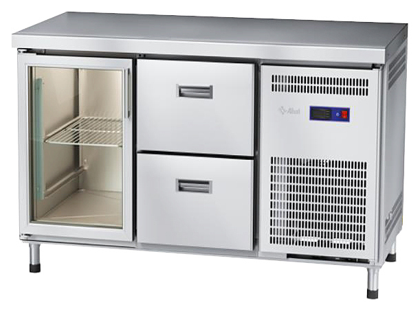 Морозильный стол Abat СХН-70-01 предназначен для раскатки теста, обработки ингредиентов для приготовления блюд, заморозки и хранения продуктов на предприятиях общественного питания и торговли. Модель оснащена регулируемой по высоте полкой-решеткой, 1 распашной дверцей из стекла и 2 выдвижными ящиками с уплотнителями с магнитной вставкой для обеспечения полной теплоизоляции и регулируемыми ножками.