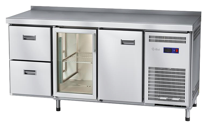 Стол морозильный Abat СХН-70-02 (1 дверь, 1 дверь-стекло, 2 ящика, борт)