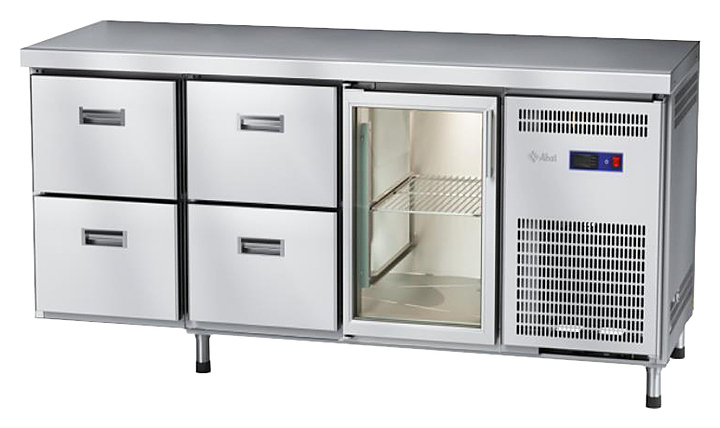 Стол морозильный Abat СХН-70-02 (1 дверь-стекло, 4 ящика, без борта)