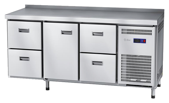 Морозильный стол Abat СХН-70-02 предназначен для раскатки теста, обработки ингредиентов для приготовления блюд, заморозки и хранения продуктов на предприятиях общественного питания и торговли. Модель оснащена регулируемой по высоте полкой-решеткой, 1 распашной дверцей и 4 выдвижными ящиками с уплотнителями с магнитной вставкой для обеспечения полной теплоизоляции и регулируемыми ножками.