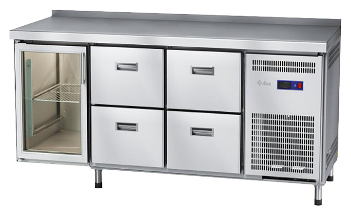 Стол морозильный Abat СХН-70-02 (4 ящика, 1 дверь-стекло, борт)