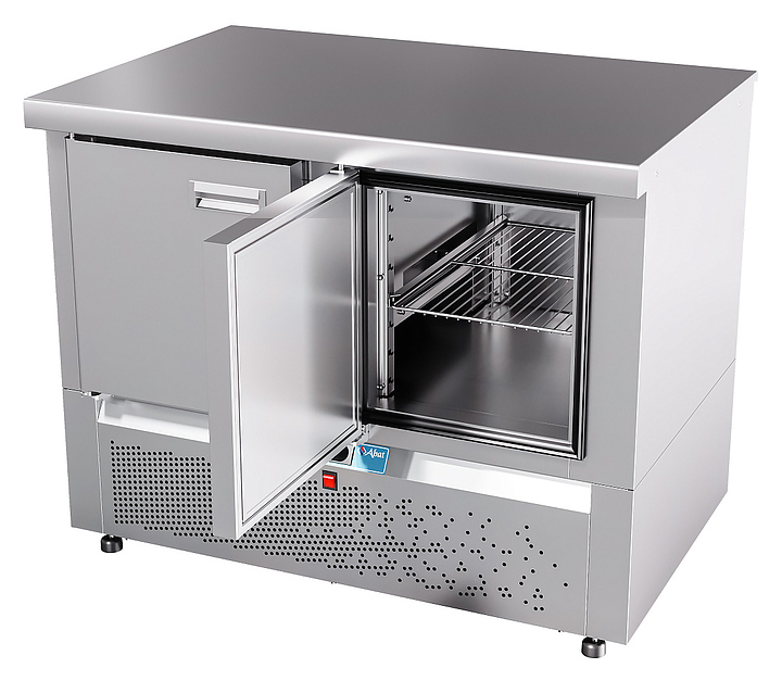 Морозильный стол Abat СХН-70Н-01 предназначен для раскатки теста, обработки ингредиентов для приготовления блюд, охлаждения и кратковременного хранения скоропортящихся продуктов и напитков на предприятиях общественного питания и торговли. Модель оснащена неохлаждаемой рабочей поверхностью, 2 распашными дверьми с доводчиками и уплотнителями с магнитной вставкой, 2 регулируемыми по высоте полками-решетками и регулируемыми по высоте ножками. Цельнозаливной корпус выполнен из высококачественной нержавеющей стали AISI 202 c пенополиуретановой изоляцией.