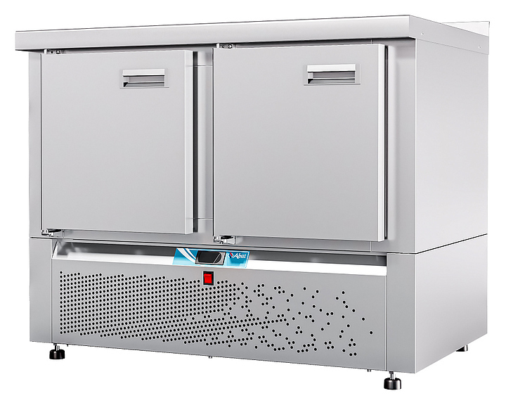 Морозильный стол Abat СХН-70Н-01 предназначен для раскатки теста, обработки ингредиентов для приготовления блюд, охлаждения и кратковременного хранения скоропортящихся продуктов и напитков на предприятиях общественного питания и торговли. Модель оснащена неохлаждаемой рабочей поверхностью, 2 распашными дверьми с доводчиками и уплотнителями с магнитной вставкой, 2 регулируемыми по высоте полками-решетками и регулируемыми по высоте ножками. Цельнозаливной корпус выполнен из высококачественной нержавеющей стали AISI 202 c пенополиуретановой изоляцией.