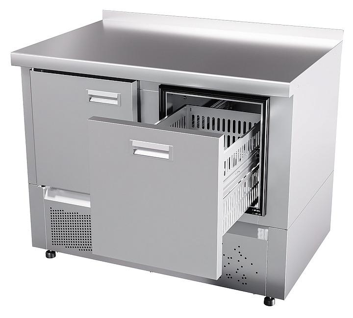 - Совмещает функции холодильного шкафа и рабочего стола