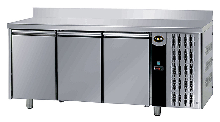 Морозильный стол Apach AFM 03BTAL предназначен для раскатки теста, обработки, заморозки и долговременного хранения продуктов, полуфабрикатов, напитков и мороженого на предприятиях общественного питания и торговли. Модель с электронной панелью управления оснащена самозакрывающимися дверями с магнитным уплотнителем. Корпус и внутренняя камера изготовлены из нержавеющей стали AISI 304, изоляция - из пенополиуретана толщиной 40 мм.