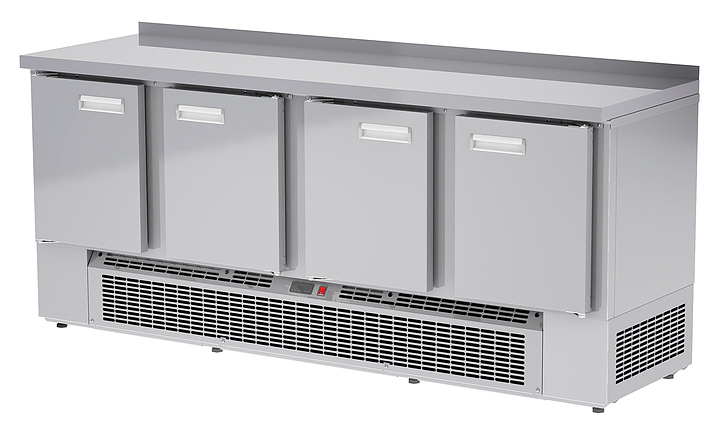 Морозильный стол АРКТО СХНН-4-60 предназначен для хранения предварительно замороженных пищевых продуктов на предприятиях общественного питания и торговли. Модель оснащена расположенным снизу агрегатным отсеком с фронтальной термовыводящей решеткой, столешницей с задним бортом, 4 распашными дверьми и электронным блоком управления с цифровым дисплеем. Корпус выполнен из высококачественной нержавеющей стали.
