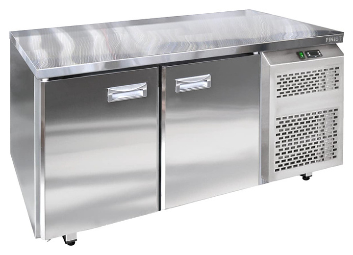 Морозильный стол Finist НХСмт-700-1 предназначен для хранения предварительно замороженных пищевых продуктов, а также размещения теплового оборудования на предприятиях общественного питания и торговли. Модель оснащена встроенным холодильным агрегатом с боковым расположением, столешницей повышенной прочности, холодильной камерой с 1 секцией с распашной дверью, устойчивыми опорами с подпятниками, кабелем питания с евровилкой и панелью управления. Корпус за исключением задней стенки выполнен из высококачественной нержавеющей стали.