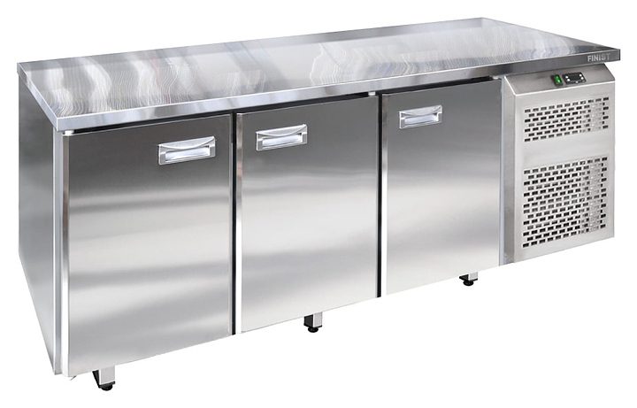 Морозильный стол Finist НХСмт-700-3 предназначен для хранения предварительно замороженных пищевых продуктов, а также размещения теплового оборудования на предприятиях общественного питания и торговли. Модель оснащена встроенным холодильным агрегатом с боковым расположением, столешницей повышенной прочности, холодильной камерой с 3 секциями с распашными дверьми, устойчивыми опорами с подпятниками, кабелем питания с евровилкой и панелью управления. Корпус за исключением задней стенки выполнен из высококачественной нержавеющей стали.
