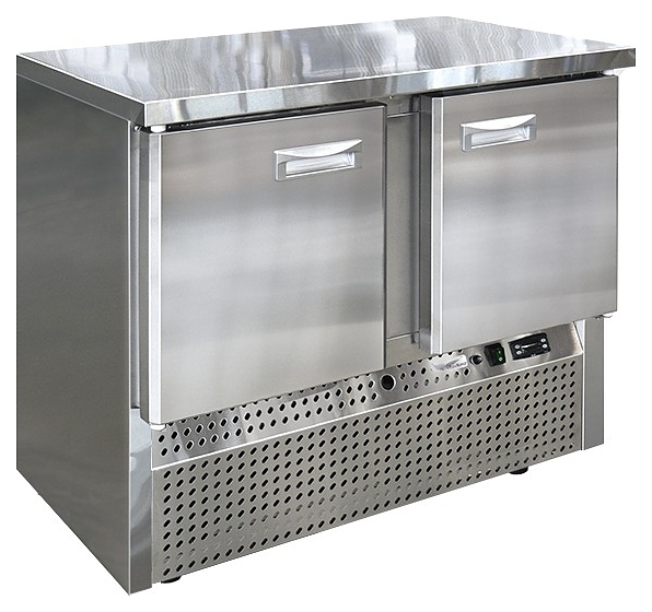 Морозильный стол Finist НХСн-600-2 предназначен для хранения предварительно замороженных пищевых продуктов на предприятиях общественного питания и торговли. Модель оснащена расположенным снизу агрегатным отсеком, столешницей, 2 холодильными камерами с распашными дверцами, устойчивыми ножками с подпятниками, кабелем питания с евровилкой и кнопочной панелью управления с цифровым дисплеем. Цельнозаливной корпус выполнен из высококачественной нержавеющей стали.