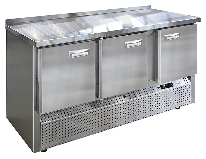 Морозильный стол Finist НХСн-700-3 предназначен для хранения предварительно замороженных пищевых продуктов на предприятиях общественного питания и торговли. Модель оснащена расположенным снизу агрегатным отсеком, столешницей с задним бортом, 3 холодильными камерами с распашными дверцами, устойчивыми ножками с подпятниками, кабелем питания с евровилкой и кнопочной панелью управления с цифровым дисплеем. Цельнозаливной корпус выполнен из высококачественной нержавеющей стали.