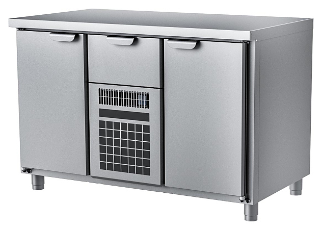Морозильный стол HappyChef TF BD 1-FBR-1 предназначен для раскатки теста и обработки ингредиентов для приготовления блюд, заморозки и долговременного хранения продуктов и напитков на предприятиях общественного питания и торговли. Модель оснащена съемной холодильной кассетой, 2 решетчатыми полками и моющимся фильтром. Корпус выполнен из нержавеющей стали AISI 430, усиленная столешница - из нержавеющей стали AISI 304 толщиной 2 мм.