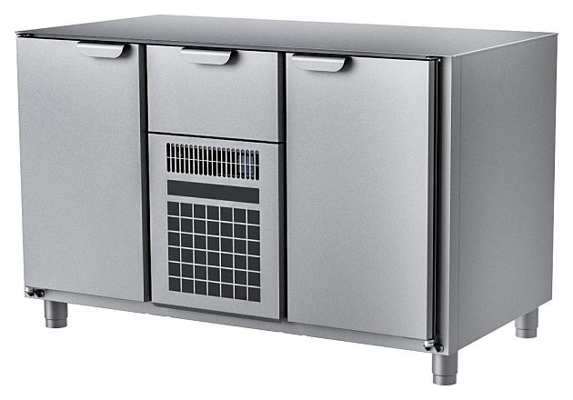 Морозильный стол HappyChef TF G 1-FBR-1 предназначен для хранения предварительно замороженных пищевых продуктов на предприятиях общественного питания и торговли. Модель оснащена секцией с компрессорным холодильным агрегатом со съемной холодильной кассетой (Россия) с нижним центральным расположением и верхним выдвижным ящиком, 1 секцией слева и 1 секцией справа с глухой распашной дверью в каждой и электронной панелью управления, двери и ящик имеют короткие горизонтальные рукоятки в верхней части. Корпус выполнен из нержавеющей стали марки AISI 430.