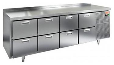 Морозильный стол HICOLD GN 2222/BT используется на предприятиях общественного питания и торговли для хранения и заморозки мясных и рыбных продуктов, полуфабрикатов, а также для раскатывания теста и обработки ингредиентов на рабочей поверхности. Цельнозаливной корпус обеспечивает высокую герметичность и жёсткость конструкции. Модель оснащена 4 секциями с 8 ящиками, расположенным сбоку агрегатным отсеком и столешницей с бортом. Корпус и столешница выполнены из нержавеющей стали.