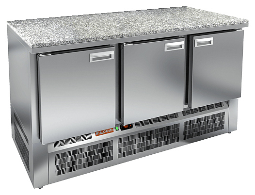 Морозильный стол HICOLD GNE 111/BT камень используется для охлаждения и хранения продуктов на предприятиях общественного питания. Оборудование выполнено из нержавеющей стали, оснащено гранитной столешницей и распашными дверями. Задняя стенка стола выполнена из оцинкованной стали, отсек холодильного агрегата спереди закрыт съемной панелью, сзади открыт.