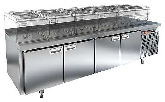 Морозильный стол HICOLD SN 1111/BT LT предназначен для установки на него теплового оборудования, заморозки и хранения продуктов, полуфабрикатов и мороженого на предприятиях общественного питания и торговли. Цельнозаливной корпус выполнен из нержавеющей стали с изоляцией толщиной 50 мм, что обеспечивает высокую герметичность и жесткость конструкции.