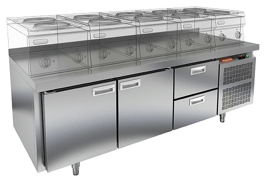 Морозильный стол HICOLD SN 112/BT LT предназначен для хранения предварительно замороженных пищевых продуктов, обработки ингредиентов в процессе приготовления блюд, а также размещения теплового оборудования на предприятиях общественного питания и торговли. Модель оснащена встроенным компрессорным холодильным агрегатом с боковым расположением, электронной панелью управления, столешницей c бортом, морозильной камерой с 3 секциями: 2 с распашной дверью в каждой и 1 с 2 выдвижными ящиками. Корпус и столешница выполнены из нержавеющей стали.