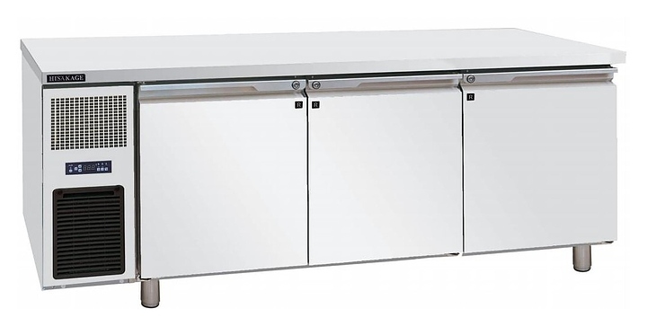 Морозильный стол HISAKAGE CB-200F предназначен для раскатки теста и обработки ингредиентов для приготовления блюд, заморозки и хранения продуктов, полуфабрикатов и мороженого на предприятиях общественного питания и торговли. Модель оснащена 3 распашными дверьми. Корпус выполнен из нержавеющей стали AISI 201.
