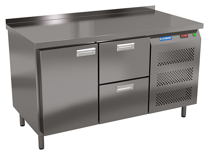 Морозильный стол КАМИК СМБ-12146 используется на предприятиях общественного питания и торговли для заморозки и длительного хранения продуктов, полуфабрикатов и мороженого. Конструкция разделена на секции, каждая секция с дверью, оснащена полкой сетчатой и парой направляющих. Корпус выполнен из нержавеющей стали AISI 430.