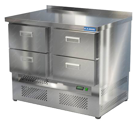 Морозильный стол КАМИК СМНБ-04108 используется на предприятиях общественного питания и торговли для заморозки и длительного хранения продуктов, полуфабрикатов и мороженого. Корпус выполнен из нержавеющей стали AISI 430 толщиной 1 мм, столешница - из нержавеющей стали AISI 304 толщиной 1,5 мм.