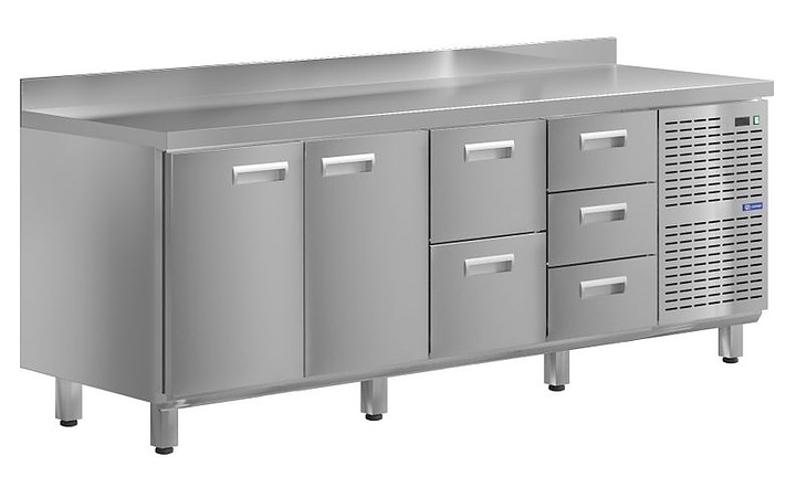 Морозильный стол KAYMAN KСМ-1123/70 предназначен для охлаждения, хранения и обработки пищевых продуктов в ресторанах, барах, кафе, столовых, на профессиональных кухнях и пищевых производствах. На прочной столешнице можно резать, раскатывать и отбивать полуфабрикаты. Модель оснащена 5 ящиками и 2 дверьми. Изделие выполнено из высококачественной нержавеющей стали, отличающейся прочностью и долговечностью.