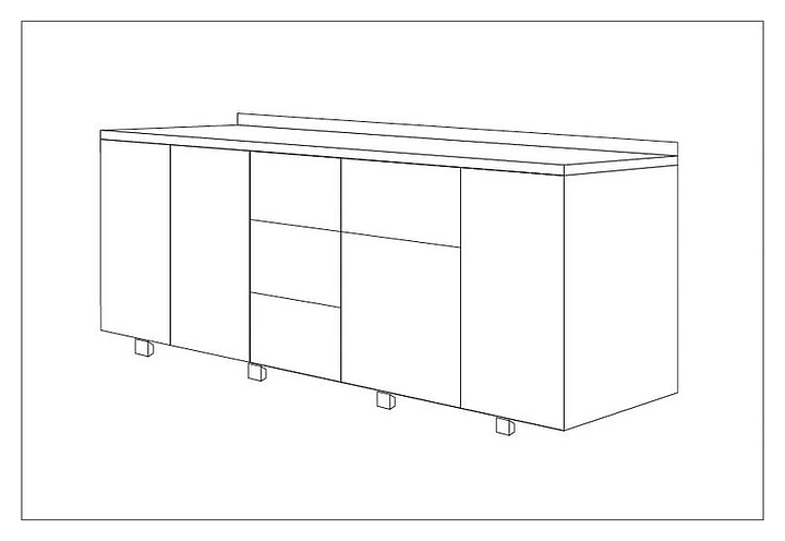- 1 секция: дверь; 2 секция: дверь; 3 секция: 3 маленьких ящика; 4 секция: 1 маленький ящик и 1 большой ящик