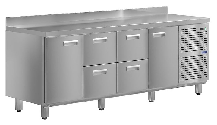 Морозильный стол KAYMAN KСМ-1221/70 предназначен для охлаждения, хранения и обработки пищевых продуктов в ресторанах, барах, кафе, столовых, на профессиональных кухнях и пищевых производствах. На прочной столешнице можно резать, раскатывать и отбивать полуфабрикаты. Модель оснащена 4 ящиками и 2 дверьми. Изделие выполнено из высококачественной нержавеющей стали, отличающейся прочностью и долговечностью.